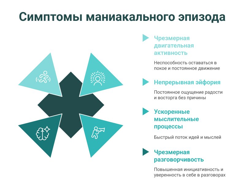 Основные симптомы маниакального эпизода включают: